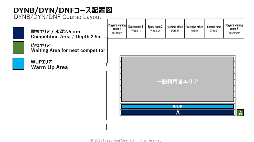 [水深]競技エリア 2.5m / ウォームアップエリア 2.5m