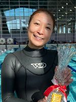 2枚フィンを使い息継ぎなしでの潜水距離を競う種目