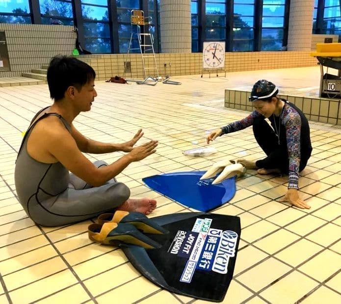 フリーダイビングだけでなく、ドルフィンスイムやスキンダイビングについてのご自身のスキルの悩みや課題・目標を詳しくお聞きします。記録を伸ばすために必要なこと、フィンの使い方、潜水フォームなどなど。あなただけのオーダーメイドでレッスン内容を作り上げます。